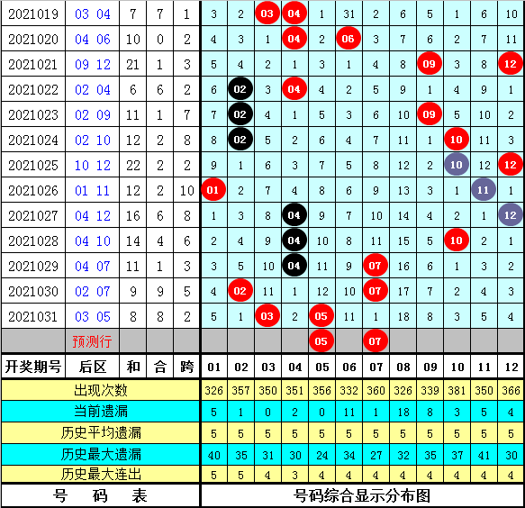 t. U8 x- Z; D1 u# S' m% c `; ] 大乐透第2021032期后区享乐分析: