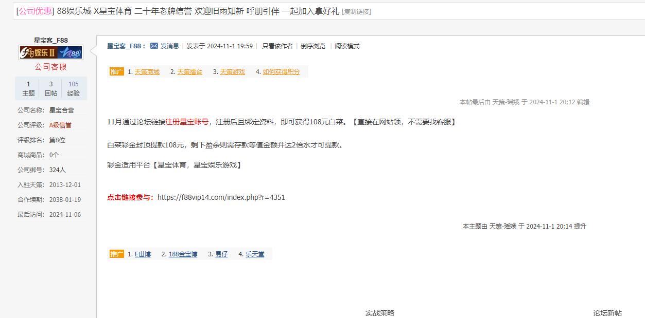 [综合讨论] 星宝娱乐,11月通过论坛注册可以领取108彩金